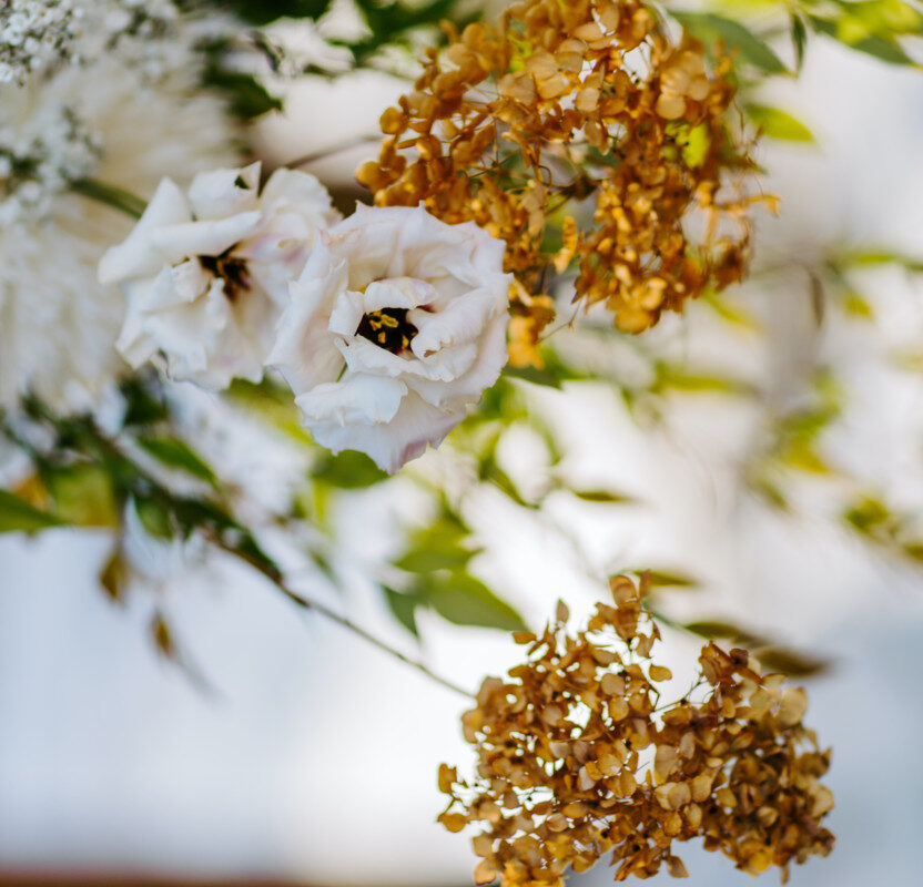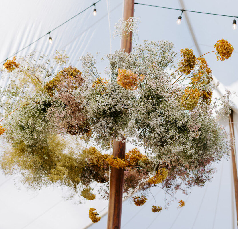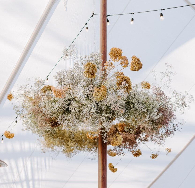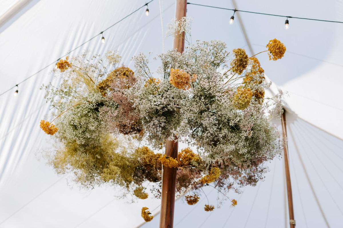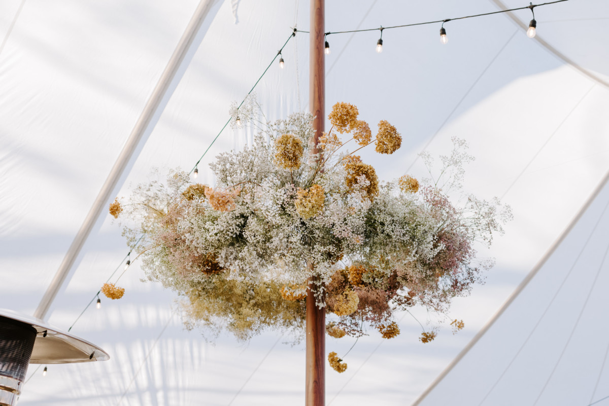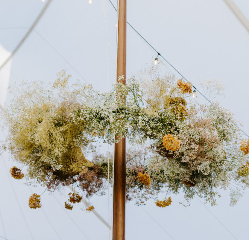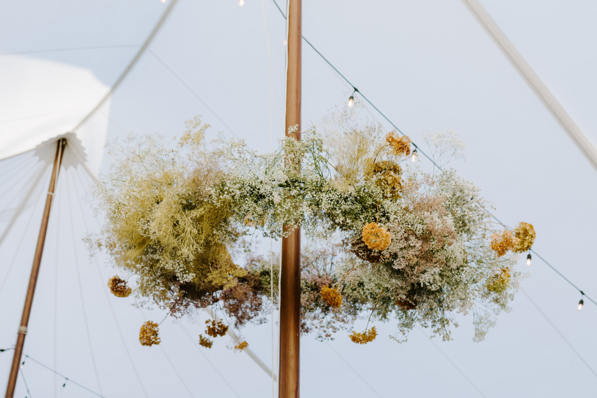 Late Fall Wedding with a Large, Dried Floral Tent Installation