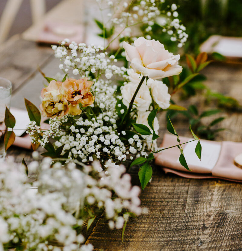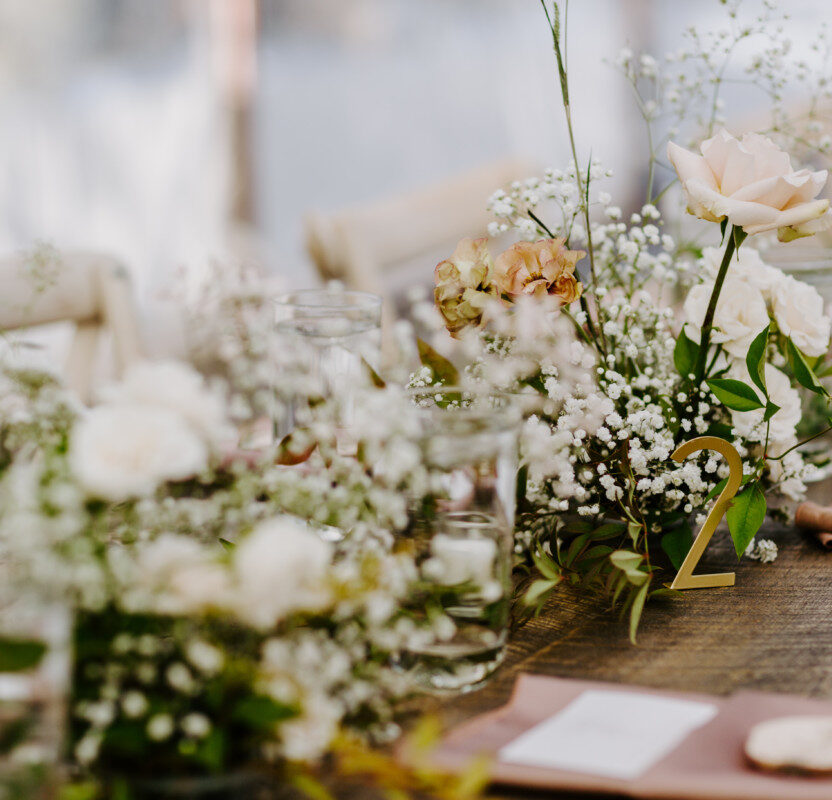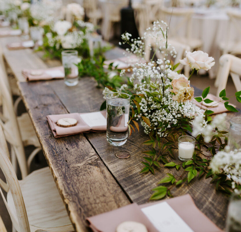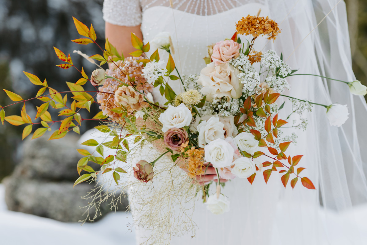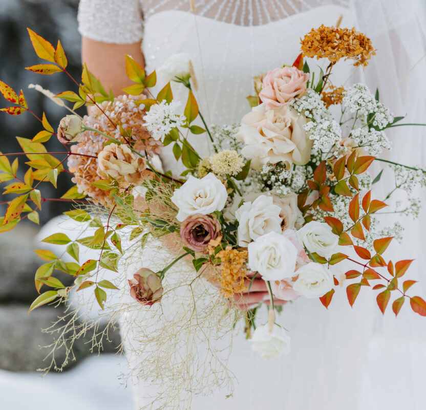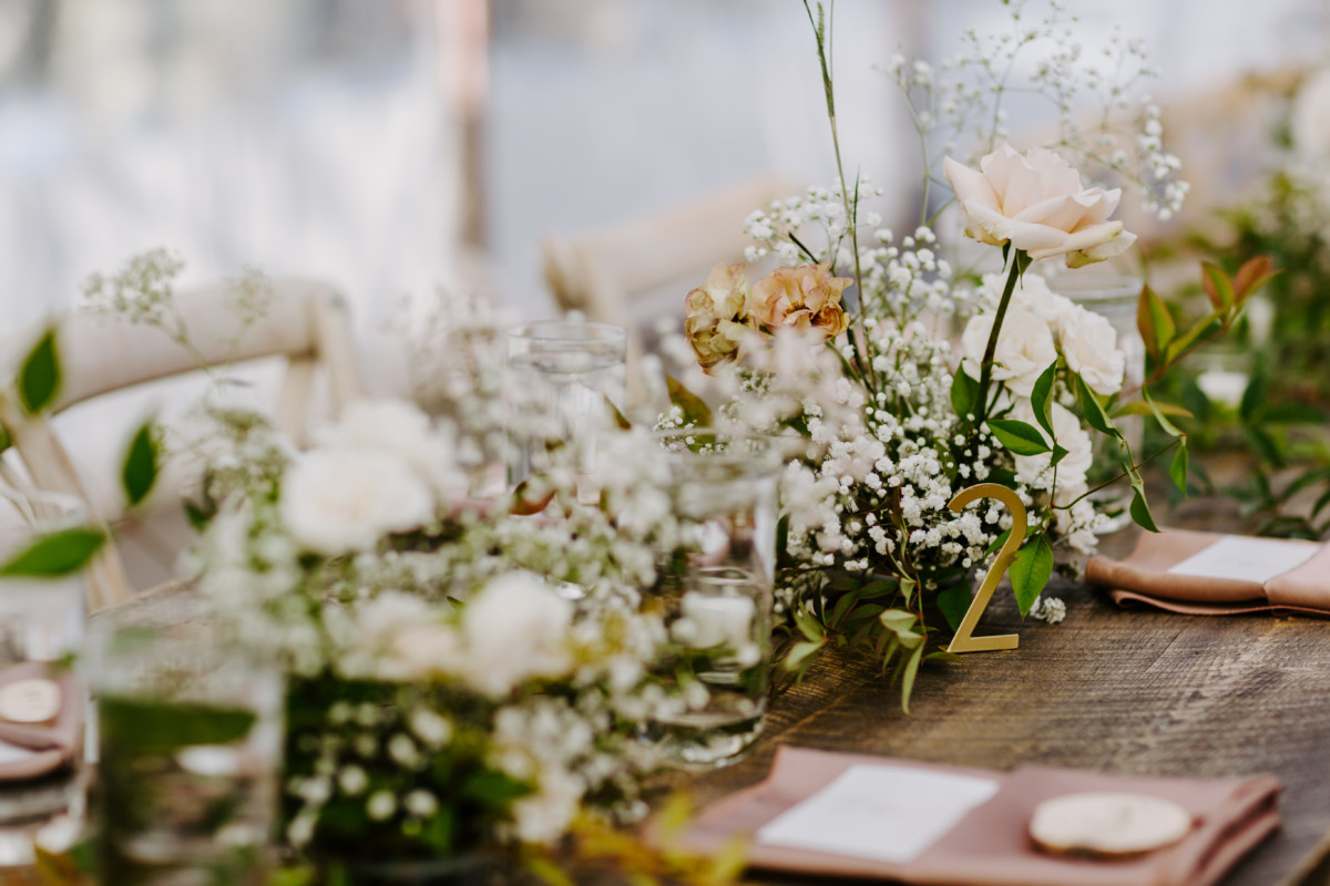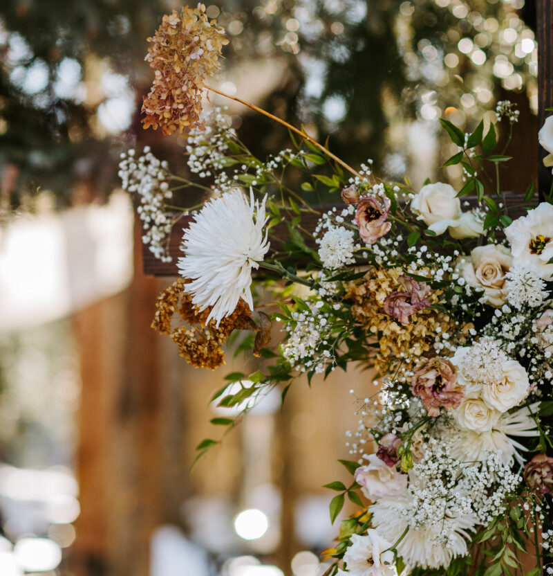 Late Fall Wedding with a Large, Dried Floral Tent Installation